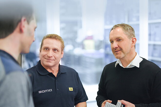 Von Schalksmühle in die Welt: Wir bei der SOMA komponieren erfolgreich individuelle Hightech-Industrielösungen für die Produktionen unserer internationalen Kunden. Wir realisieren eigenständig komplette Systemlösungen und stehen unseren Kunden während der gesamten Projektlaufzeit als kompetenter Ansprechpartner zur Verfügung. Wir bringen Maschinenbau auf neue Präzisionsstufen und bestimmen den Takt. Und dies im direkten Zusammenspiel unserer drei Geschäftsbereiche: