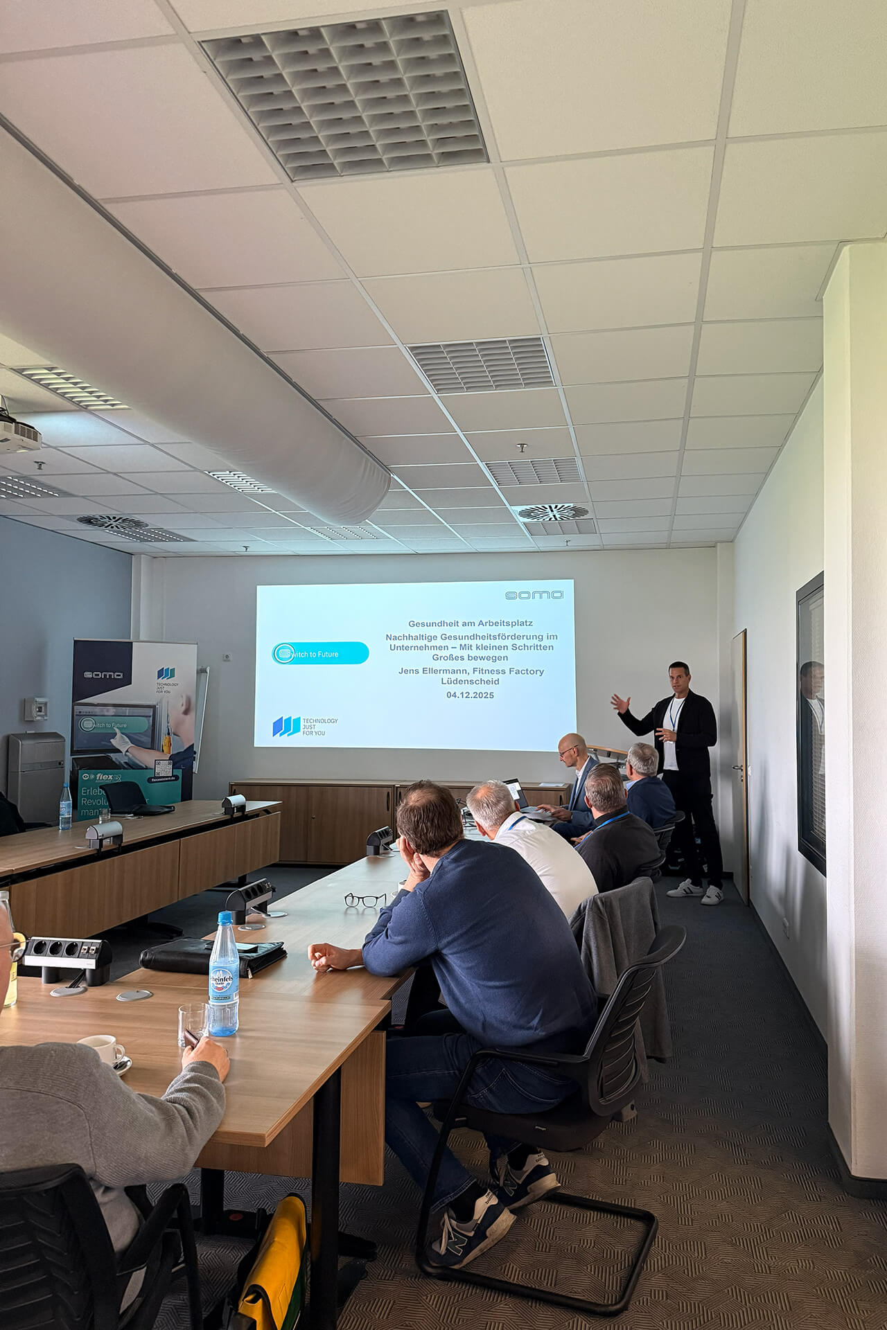 In einem Impulsvortrag zeigte Jens Ellermann, Gesundheitscoach und Inhaber der Fitness Factory in Lüdenscheid, Möglichkeiten zur Prävention arbeitsbedingter Erkrankungen. Damit wurde deutlich, dass moderne Werkerassistenz nicht nur die Qualität und Effizienz steigert, sondern auch die Gesundheit der Mitarbeitenden nachhaltig unterstützt.