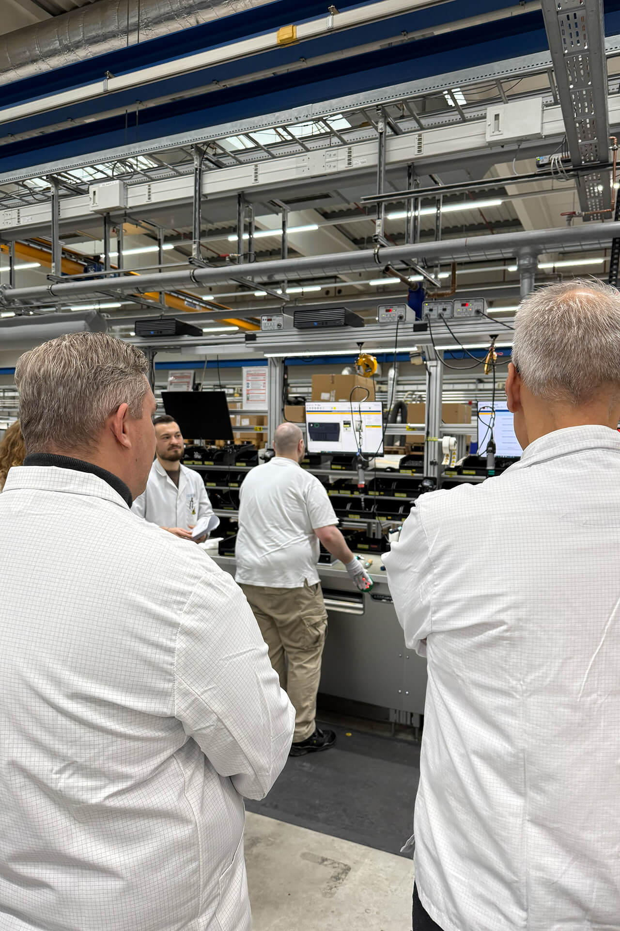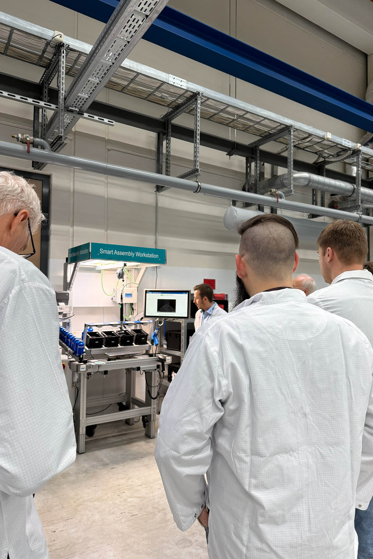 Gezeigt wurde unter anderem die Herstellung von Wechselrichtern und Antriebsreglern sowie deren Einbindung in digital unterstützte Montage- und Prüfabläufe. Der Rundgang verdeutlichte anschaulich, wie industrielle Digitalisierung, Automatisierung und Werkerassistenz in der Praxis zusammenspielen und bot wertvolle Impulse für die eigene Produktion.