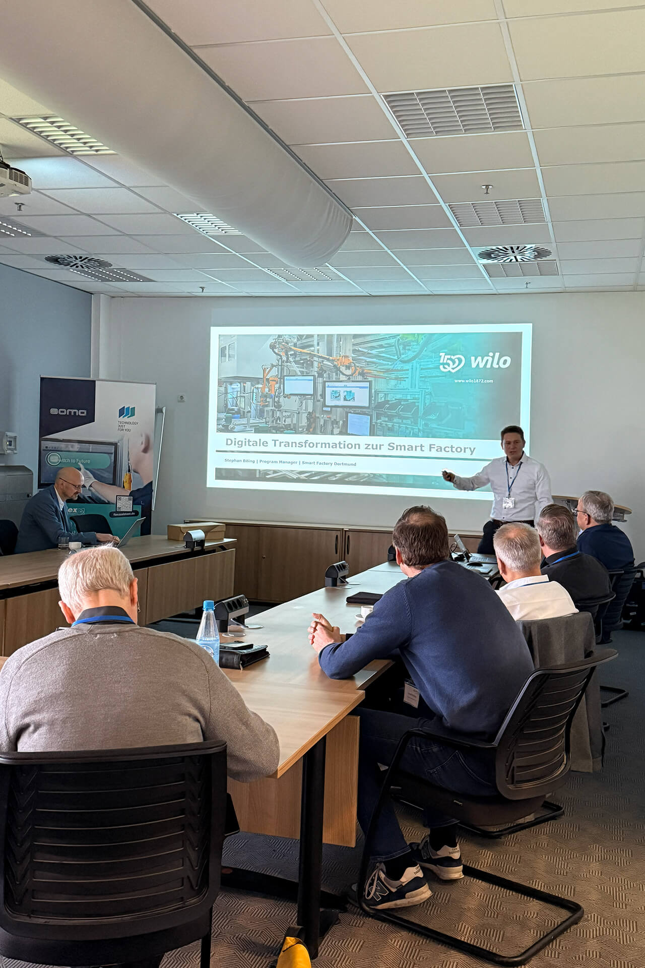 Ein besonderes Highlight war der Vortrag von Stephan Böing, Programm Manager Smart Factory der Wilo SE, der Einblicke in ihre Smart Factory in Dortmund gab. Die Präsentation verdeutlichte, wie moderne, digital vernetzte Fertigungsumgebungen entstehen und welche Rolle Assistenzsysteme wie der flexAssistant bei der Umsetzung einer zukunftsfähigen Produktionsstrategie spielen.